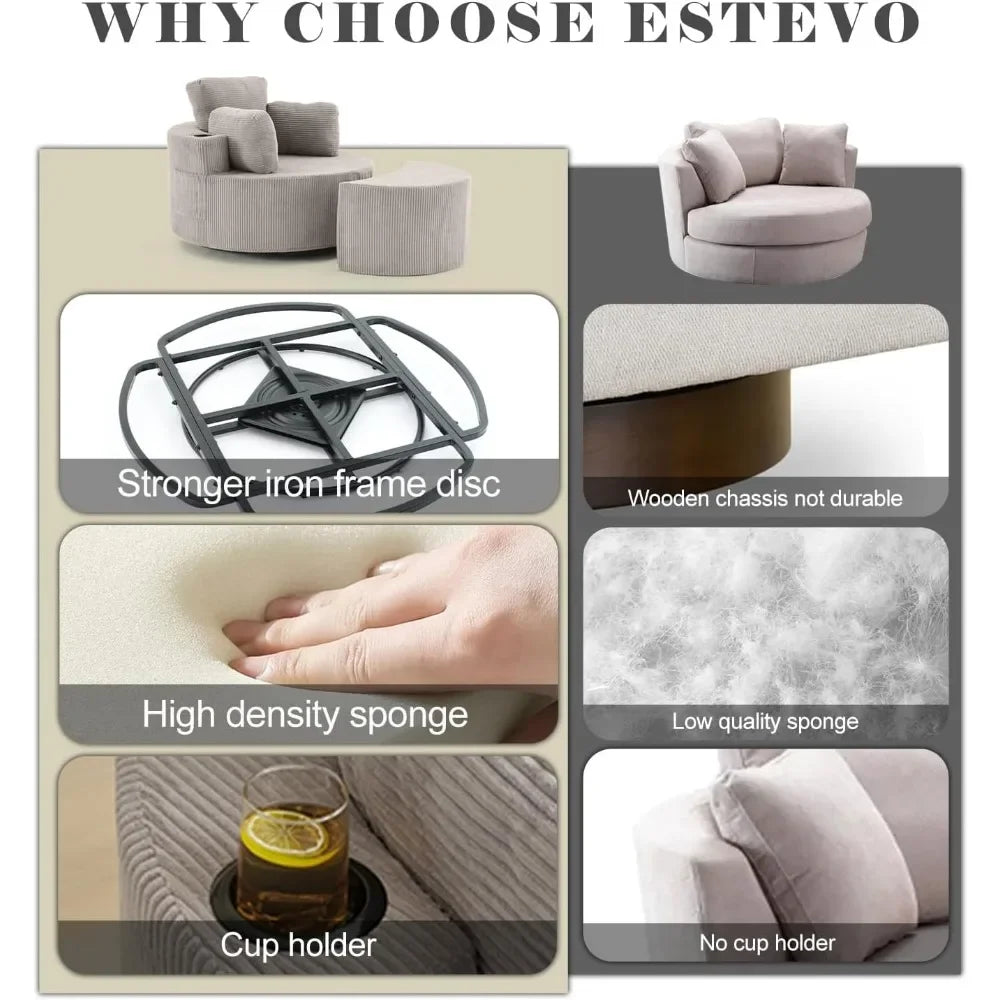 - Cozy Chair: This swivel chair is ergonomic backrest design provides exceptional support and comfort, featuring a wide wrap-around backrest and curved armrests with a spacious seat cushion for additional support and comfort. Premium quality high density padded foam cushions for luxurious comfort. Swivel barrel chair also the perfect addition to hotel lounges, bedrooms, living rooms, offices and nurseries.