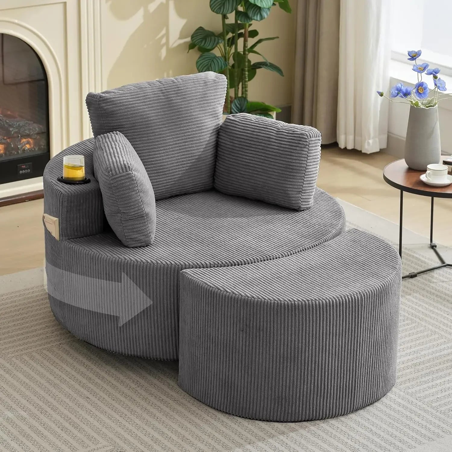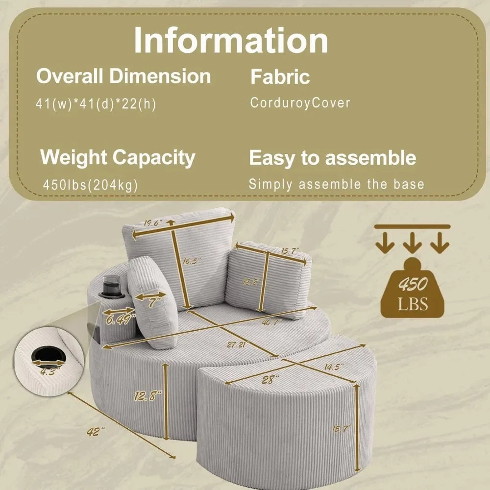 - Chair and Ottoman:Our barrel chair with Ottoman 42 Inch(W)204 kg/450 lbs.weight capacity provides you with more seating space and enhanced support.Designed for ultimate comfort,the cushioned ottoman is a great place to rest your feet and relax,and with the extra ottoman,you can comfortably recline on the cozy backrest with your feet up while reading a book or sipping a cup of coffee.